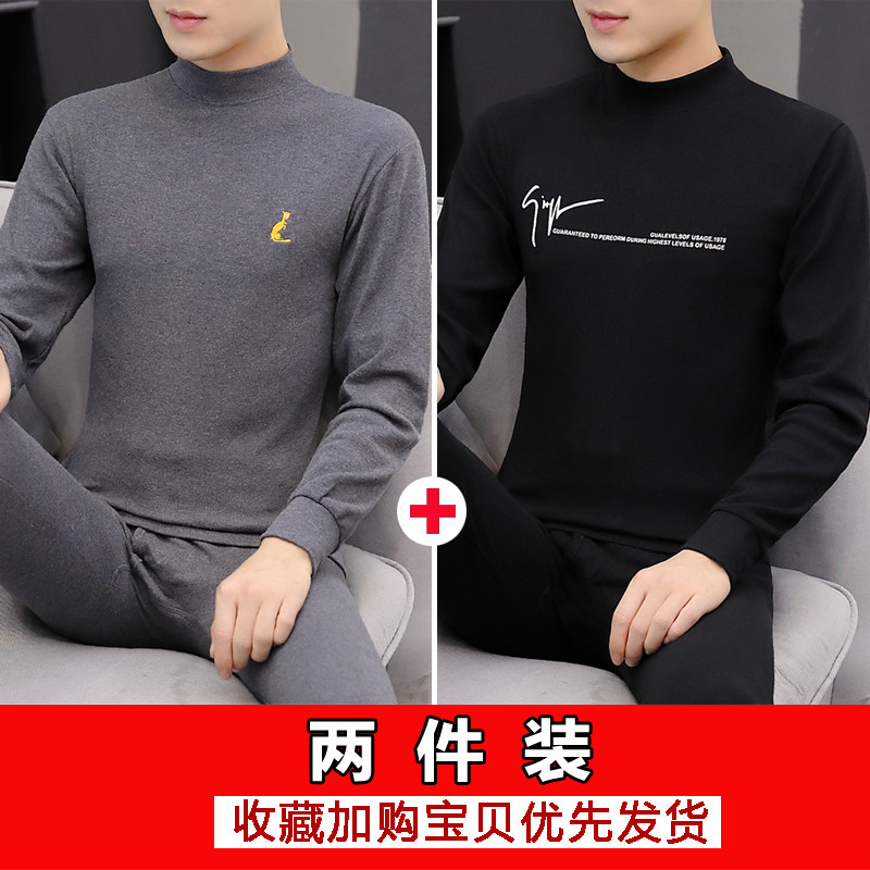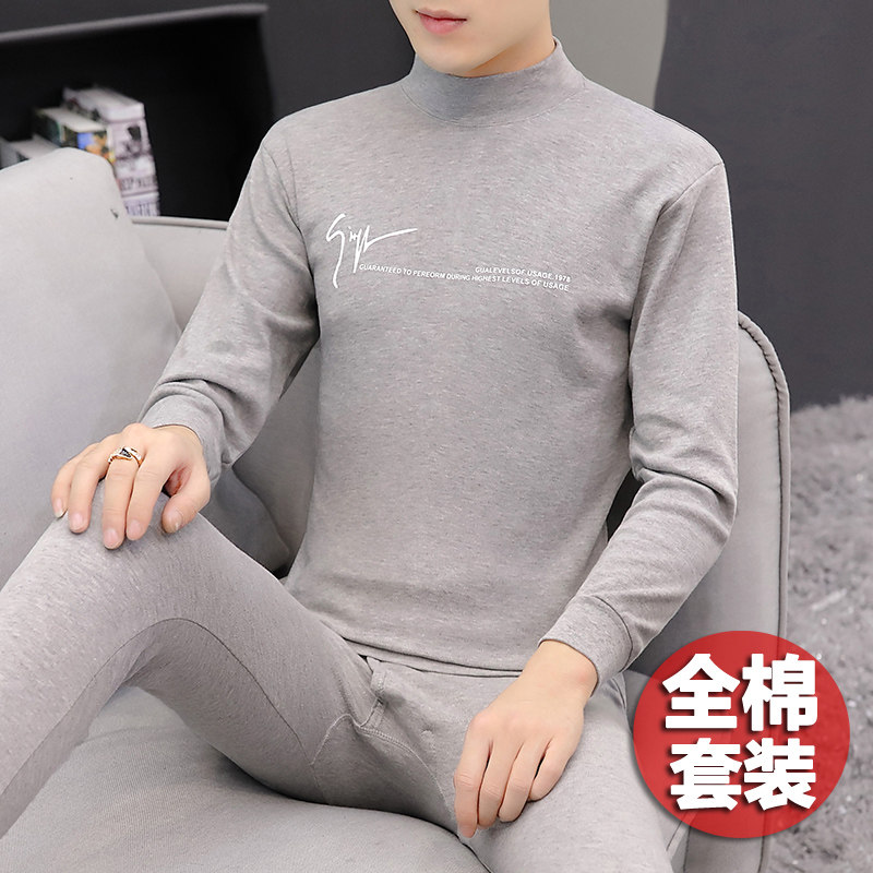 Pure cotton semi-high collar autummy sweatpants spring autumn winter middle cotton sweatshirt male soil full cotton slim calorie sweatpants
