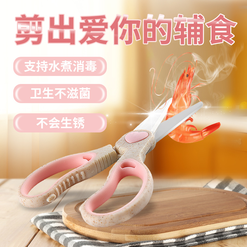 Children small scissors Kitchen Scissors Baby Deputy Food Cut Meat MEAT DISHES CERAMIC HOME BABY TOOLS PORTABLE EXTERNAL BELT CUT