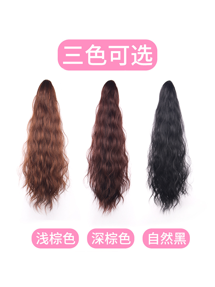 Horsetail Wig Female Grip Clip Strap Type Horsetail Fake Braid Long Curly Hair Large Wavy Pear Flower Roll Invisible Natural Temperament
