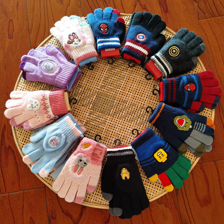 Korea winghouse Children's Gloves Five Finger Knitted Gloves Children Autumn Winter Wool Gloves Touch Screen Gloves