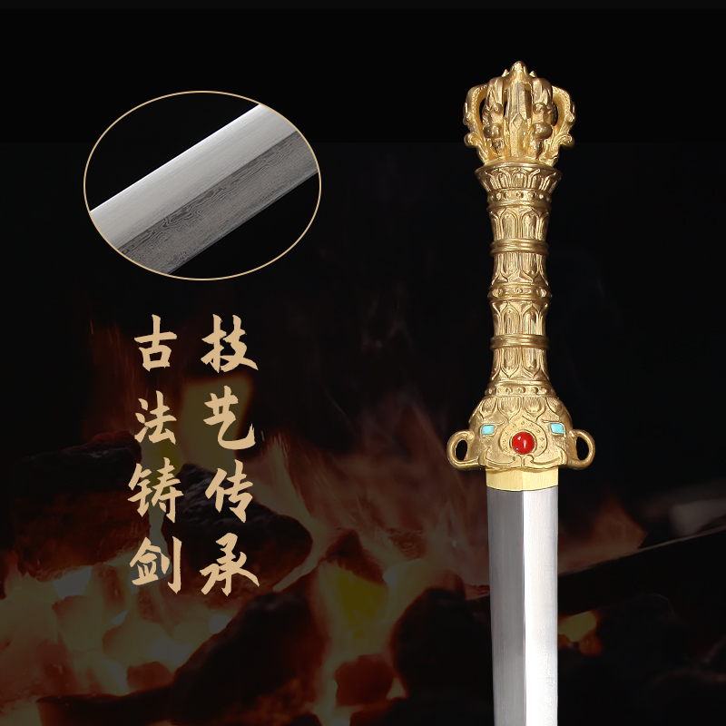 Dragon Springs Ancient Yue Sword Paving Bodhi Sword Pure Handmade Flower Pattern Steel Sword short Han sword anti-body collection The sword is unopened