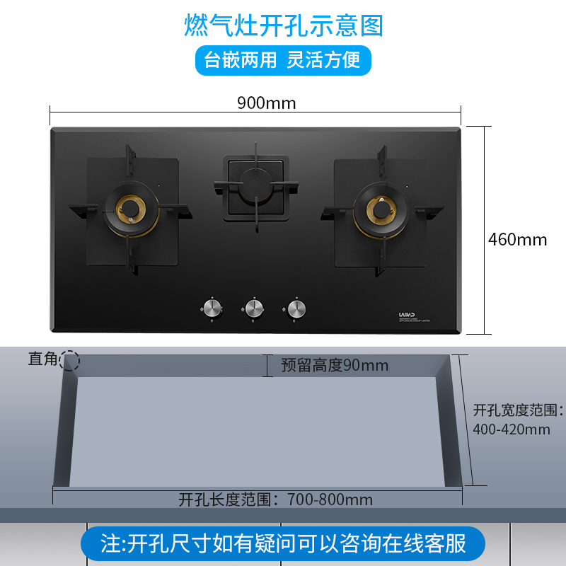 Germany Lemed three-eye gas stove embedded kitchen household large panel gas stove three stoves natural gas stove
