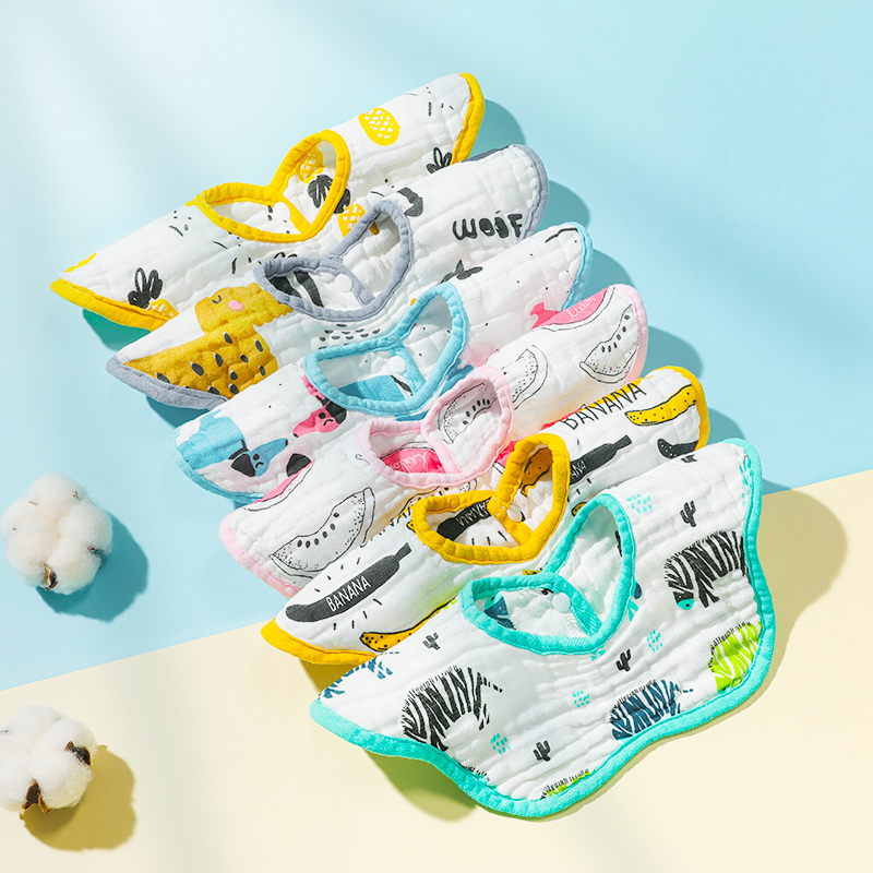 Baby cotton gauze bib Baby waterproof bib 360 degree rotatable newborn saliva towel Spit-proof milk towel