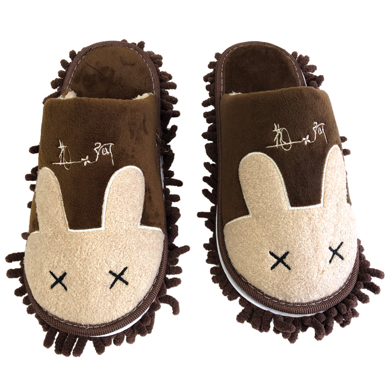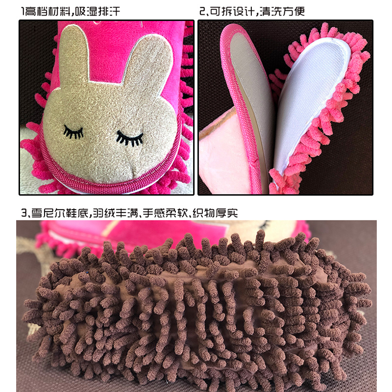 Autumn and winter lazy people wipe floor slippers do not drop hair warm mute thick chenille removable wash floor shoe cover