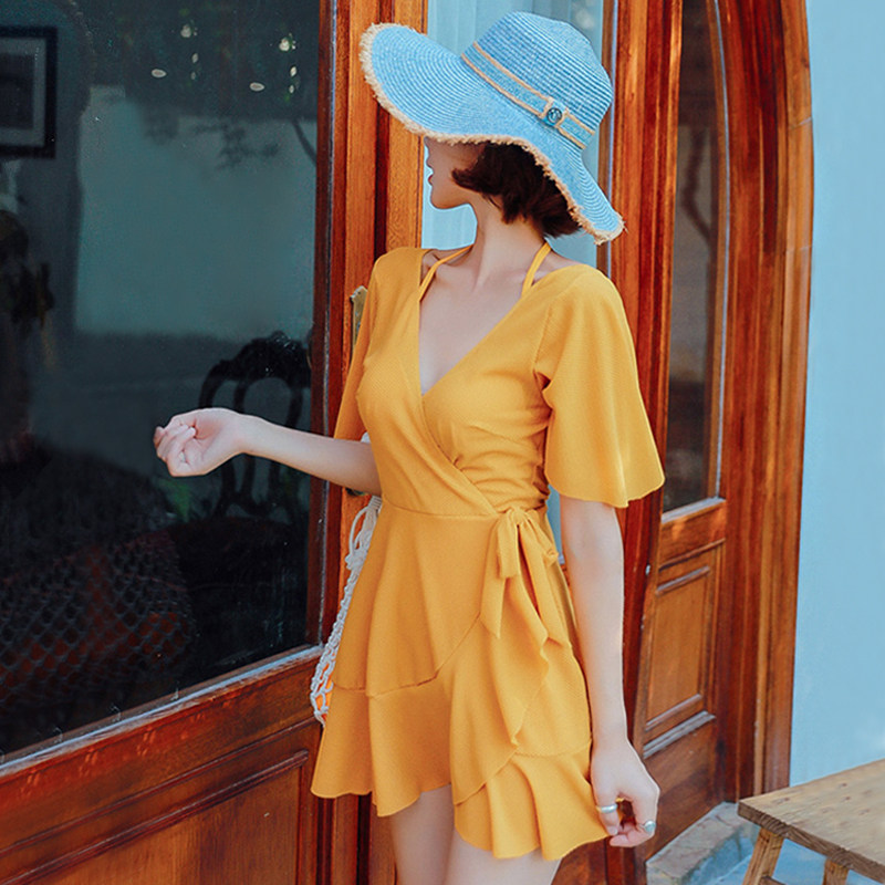 Swimsuit Fairy 2021 new conjunction dress slim shade conservative Korea sexy high waist hot spring swimsuit