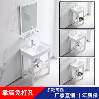 Floor-to-ceiling washbasin cabinet combination Ceramic small apartment powder room pool Balcony wall-mounted washbasin free punching