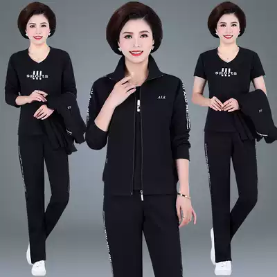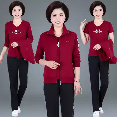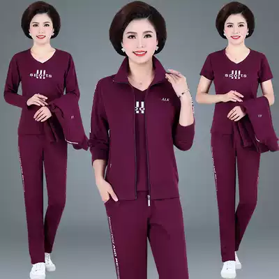 2021 spring and autumn new middle-aged and elderly sports suit women's large size pure cotton long-sleeved casual clothes three-piece mother's suit