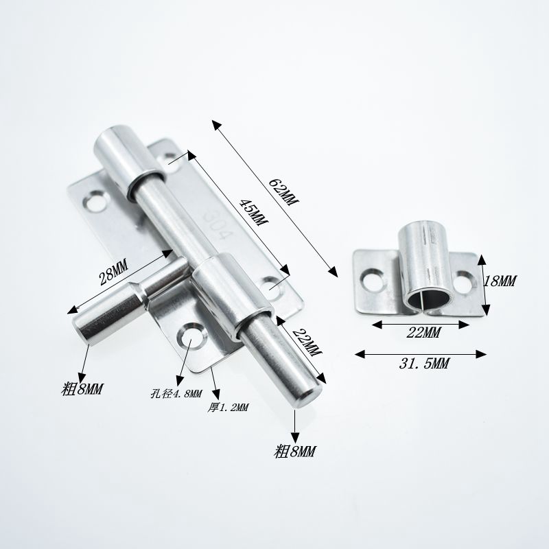 Stainless steel door bolted door buttoned security door latch bolt catch thickened dressing room wood door latch door inserted regardless of left and right bolt