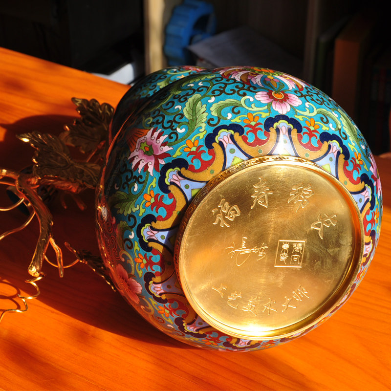 Traditional cloisonne gourd vase copper tire filigree for the elderly birthday gift business ornaments Zhang Xiangdong works
