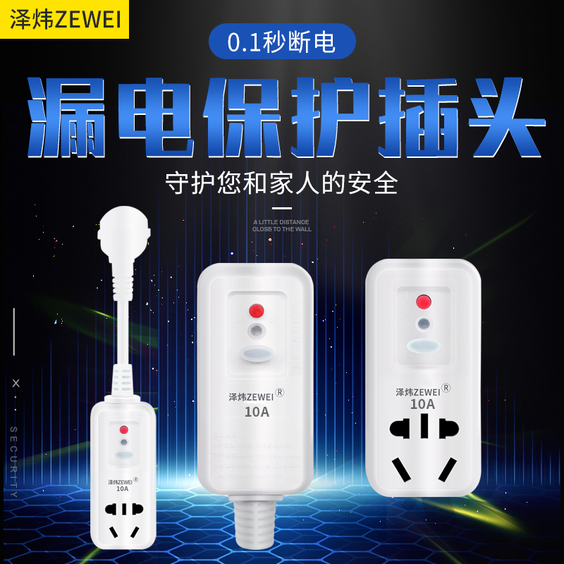 Zewei anti-leakage protection plug Electric water heater plug leakage protection plug socket 10A16A household