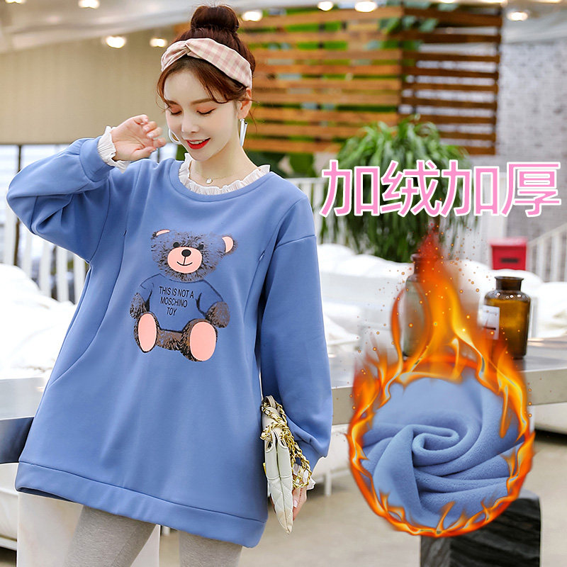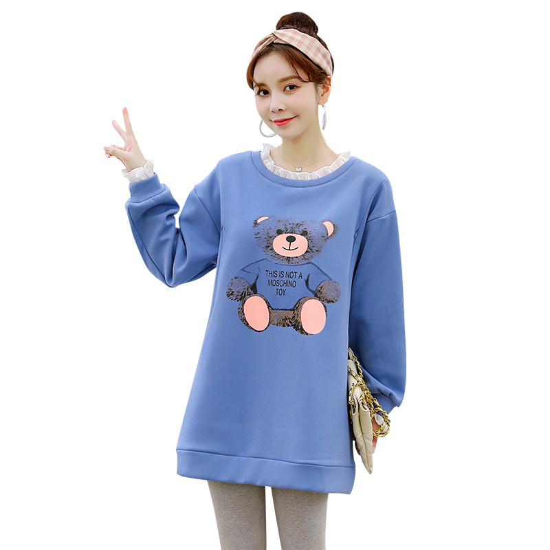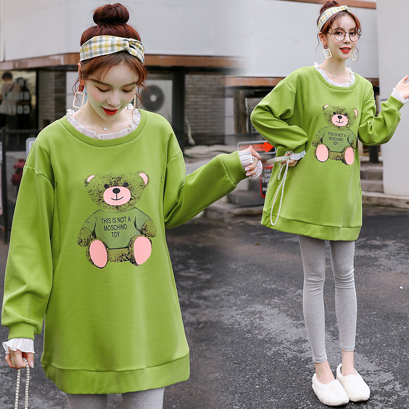 Pregnant women spring sweater long sleeve medium and long version can be worn outside the breast-feeding top Women's spring and autumn suit fashion new loose
