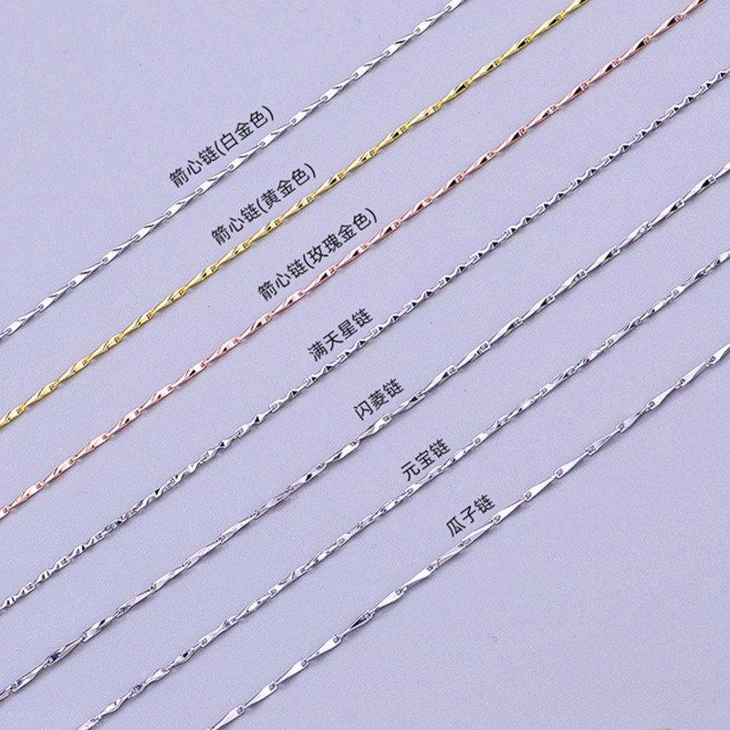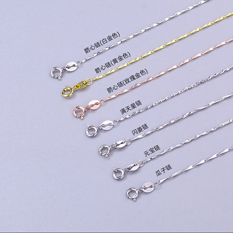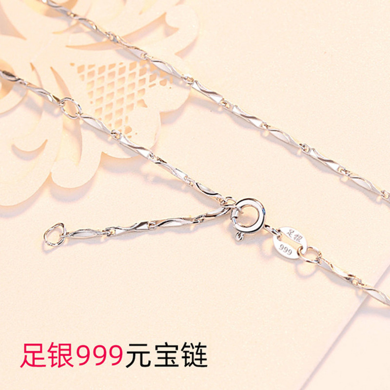 Silver Necklace Women's Clavicle Chain 999 Sterling Silver Chain Ingot Chain Necklace Flashing Diamond Starry Chain Arrow Heart Chain No Pendant