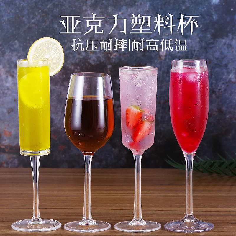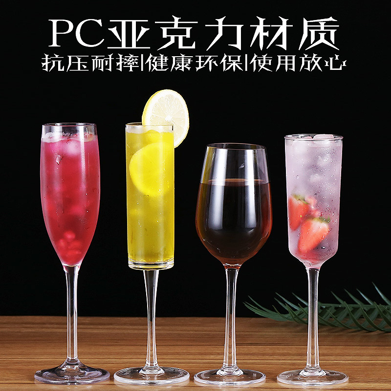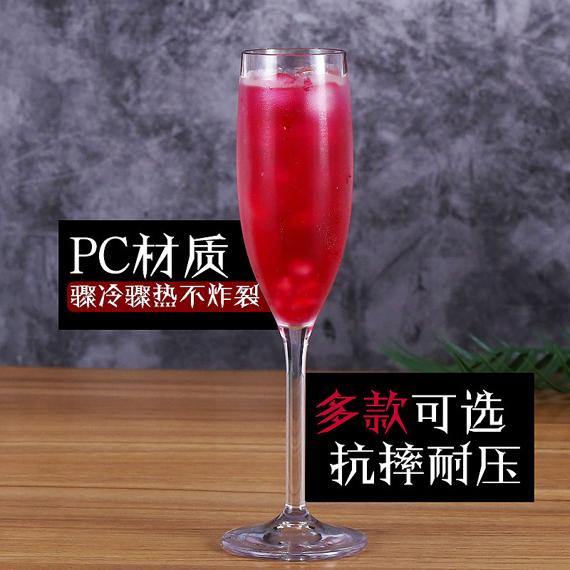 Thickened Anti-Fall PC Champagne Cup Transparent Plastic High Foot Cup KTV Party Cocktail Glass PC Acrylic Juice Cup
