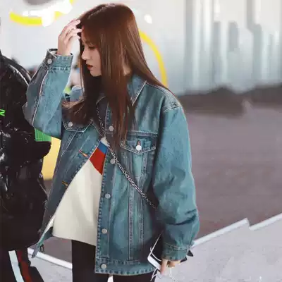 Hong Kong 2021 Autumn Ju Jingyi star same denim coat female bf Hong Kong style long version Net red retro coat