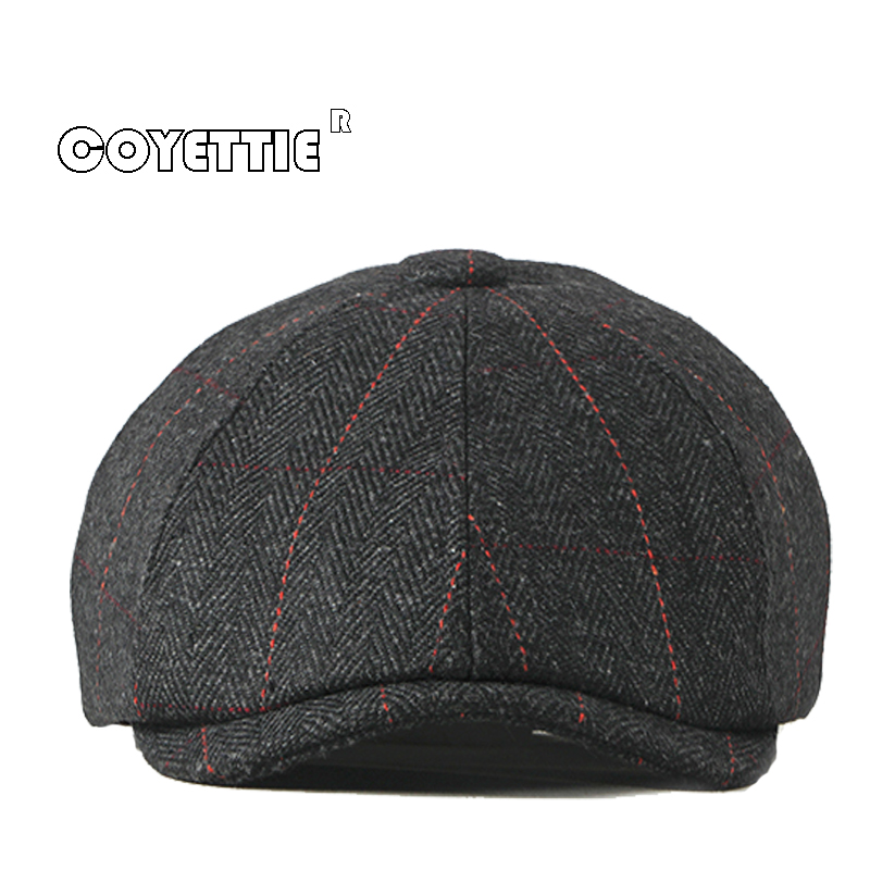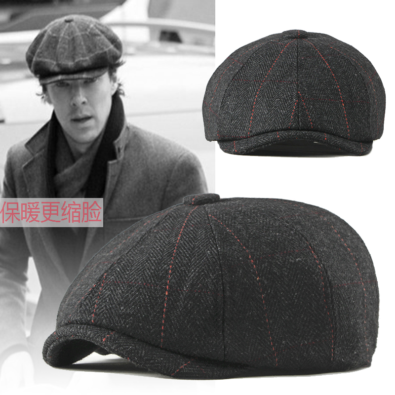 Men's hats trendy autumn and winter woolen newsboy hats retro British peaked caps middle-aged and elderly literary painters hats berets