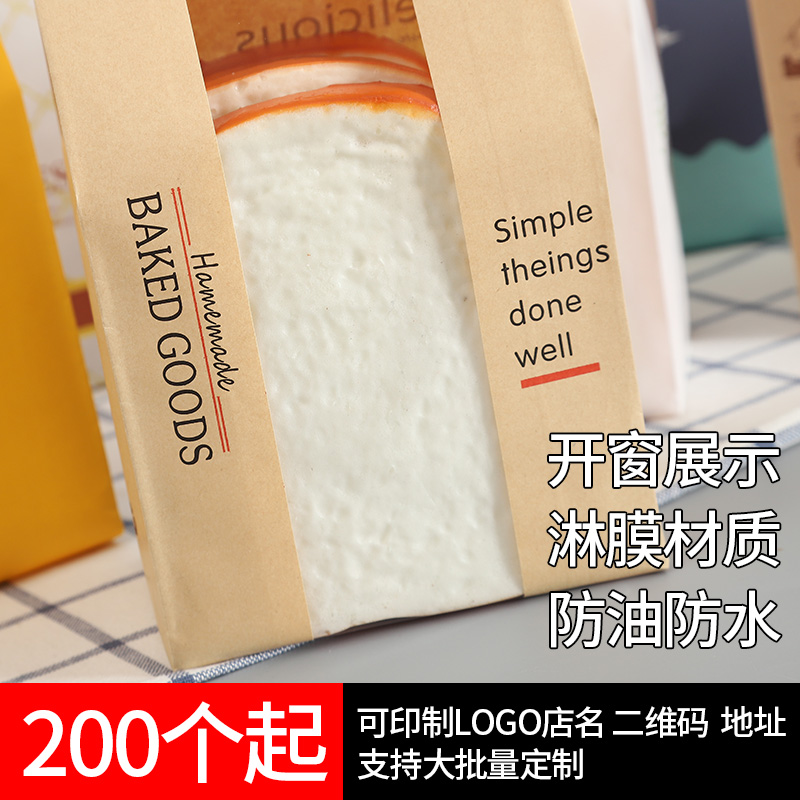 Toast bag 450g100 baked bread bag window-coated toast ziplock bag kraft paper transparent packaging