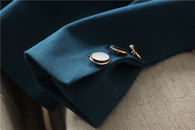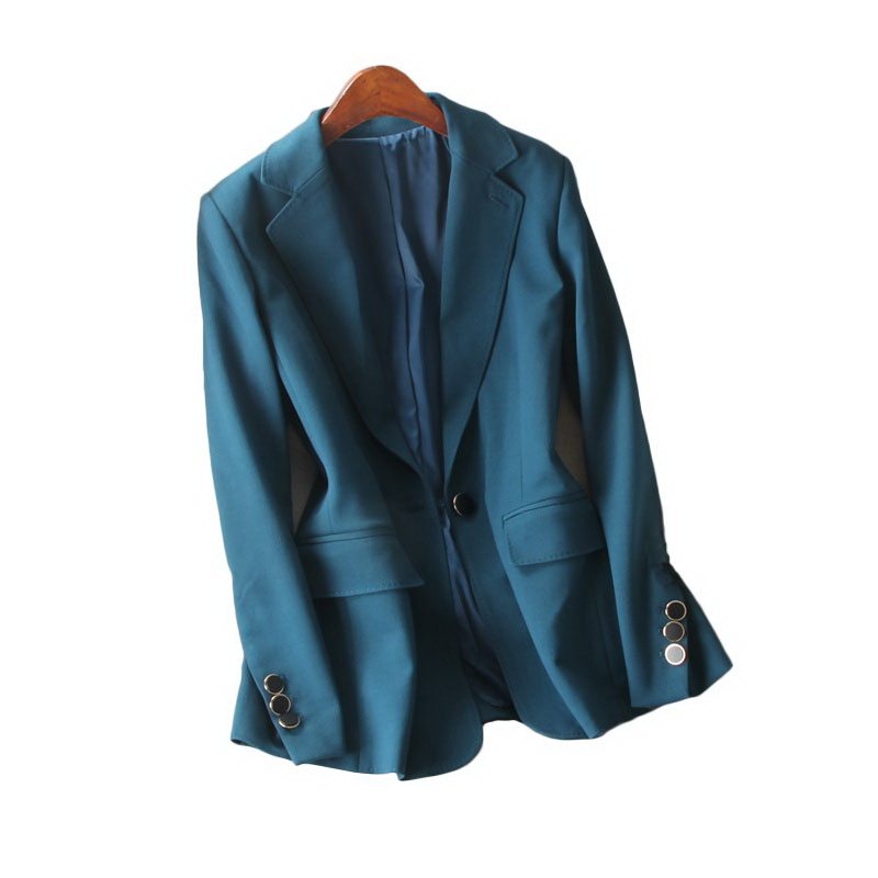Workplace stunning temperament peacock blue one grain button long sleeve with padded shoulder in length and thin suit jacket Women's autumn
