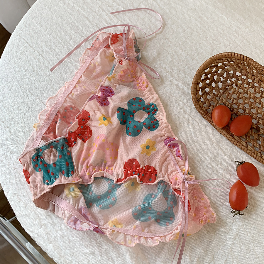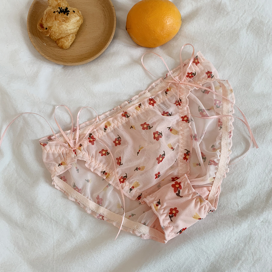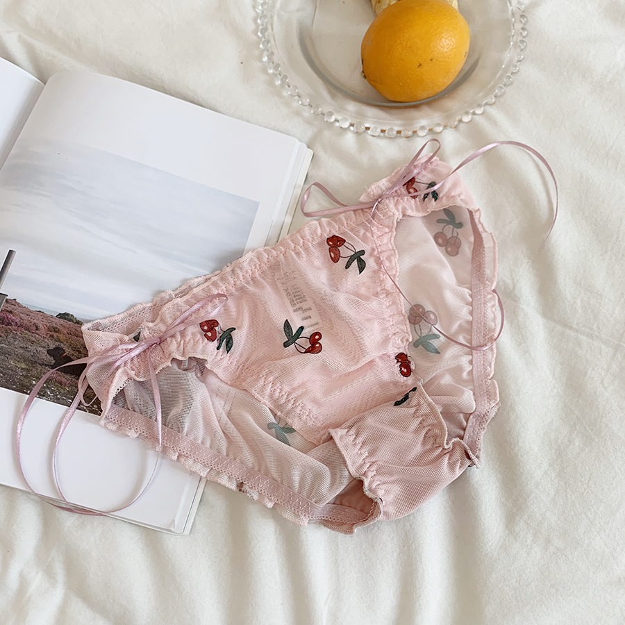Day Ensemble Cute Mesh Yarn Sweet Printed Lace Butterfly Knot Comfort Fruit Teenage Girl Sexy Low Waist Lady Triangle Underwear