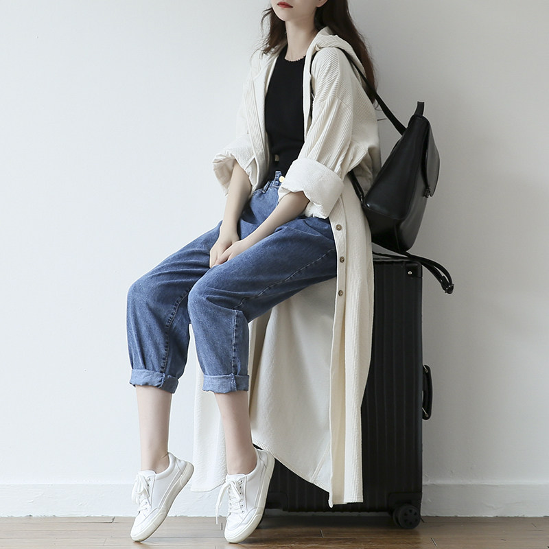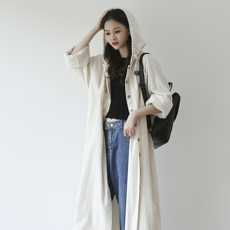 suin2021 Spring and Autumn Art Loose Corduroy Long Edition Knee-over Hat Temperament Trench Coat Casual Coat Female 9238