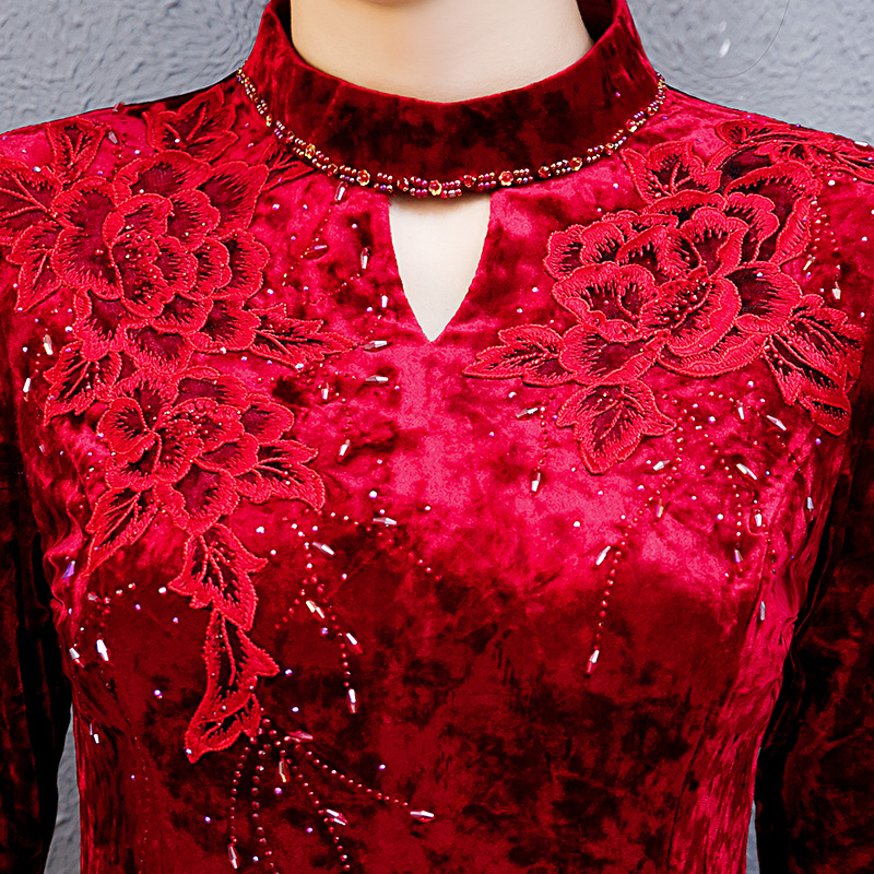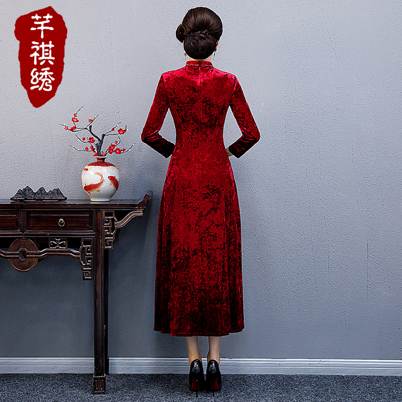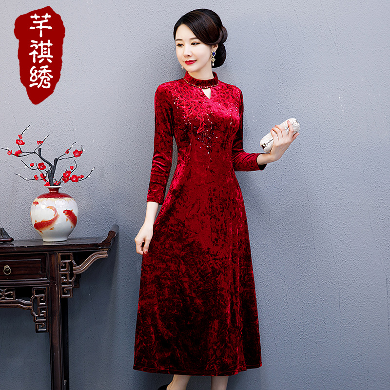 Joy Mother-in-law Wedding Banquet Dress Gold Velvet Improved Qipao Young Section 2021 Mom Banquet Wedding Gown High-end Temperament