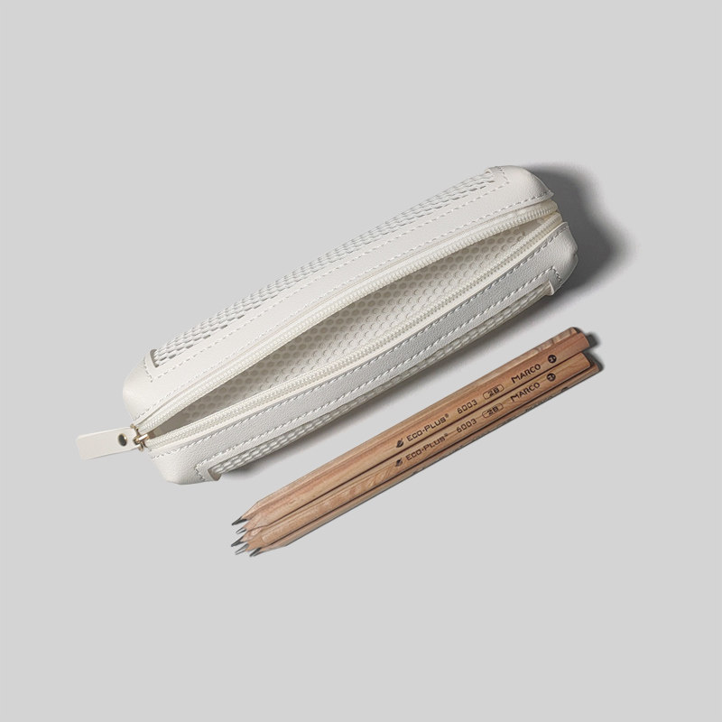 ins original high-value stationery lychee pattern pu stitching pvc mesh hollow primary school students pencil large-capacity pencil case