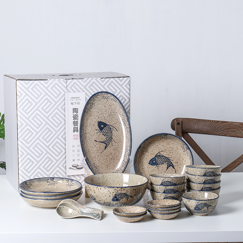 Underglaze color ceramic family tableware set Japanese gift 28 Tommy rice bowl dishes Nordic Chinese household