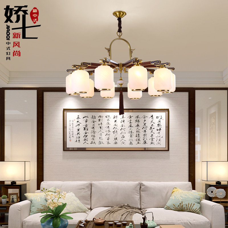 Q new Chinese chandelier all copper living room lamp dining room lamp Zen Chinese style hotel villa duplex building atmospheric chandelier