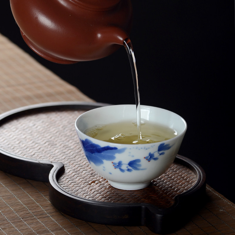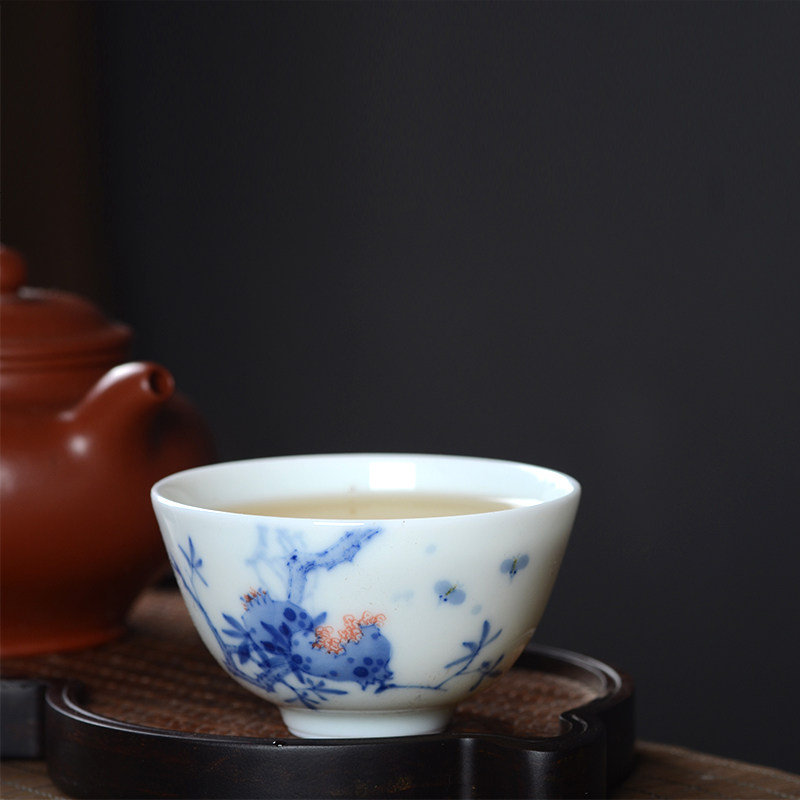 Jingdezhen Hand-painted Green Flower Porcelain Glaze Lower Color Ceramic Jade Clay Master Cup Koru Tea Tasting Cup Single Cup