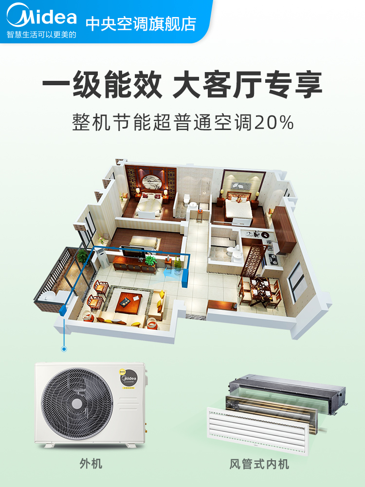 Midea duct machine large 3 HP variable frequency living room air conditioning household one to one central air conditioning enjoy the second generation of purchase in the same city