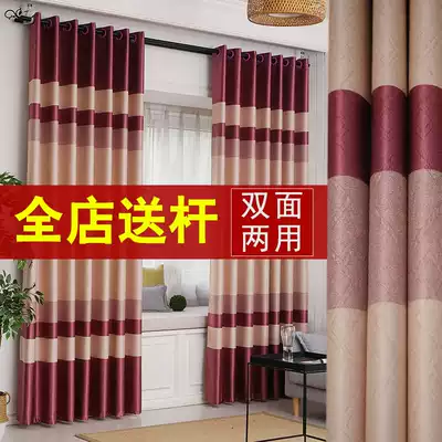 Full blackout curtains Bedroom living room sunshade bay window cloth floor-to-ceiling 2021 new thermal insulation sunscreen curtain rod a complete set