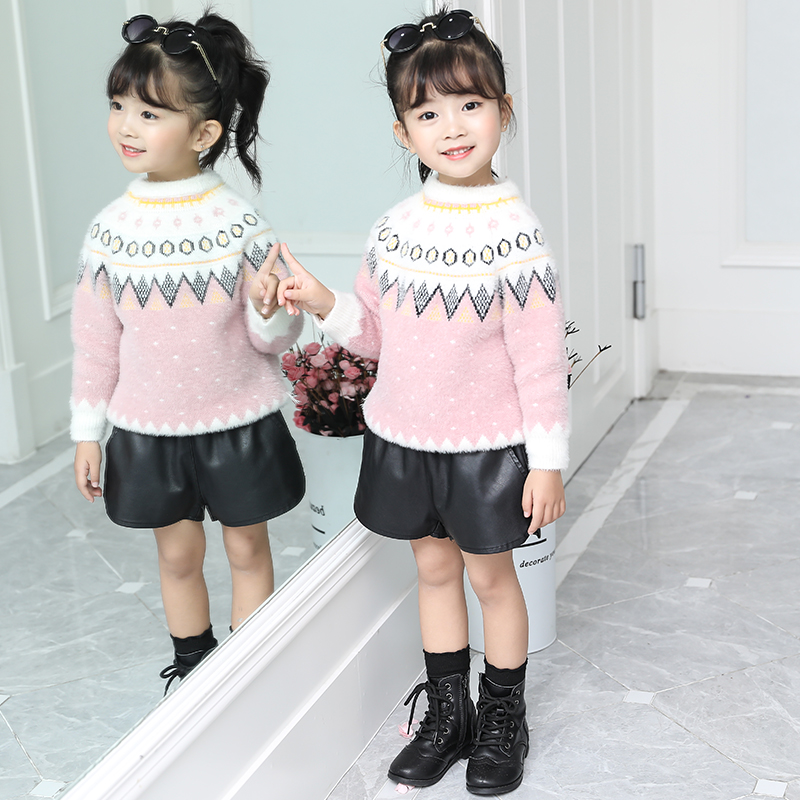 Girls sweater 2019 autumn and winter new Western style mink fleece sweater children's baby pullover warm bottoming sweater