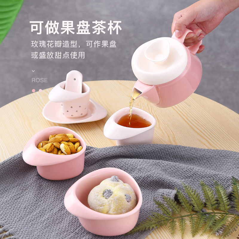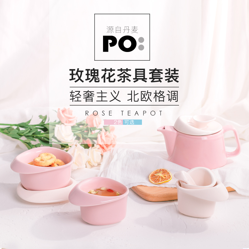 Danish PO Rose Blossom Teapot Kongfu Tea Furniture Set Porcelain Home Brief Nordic Tea Maker Refined Gift Box Gift