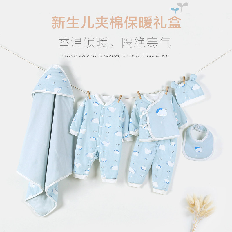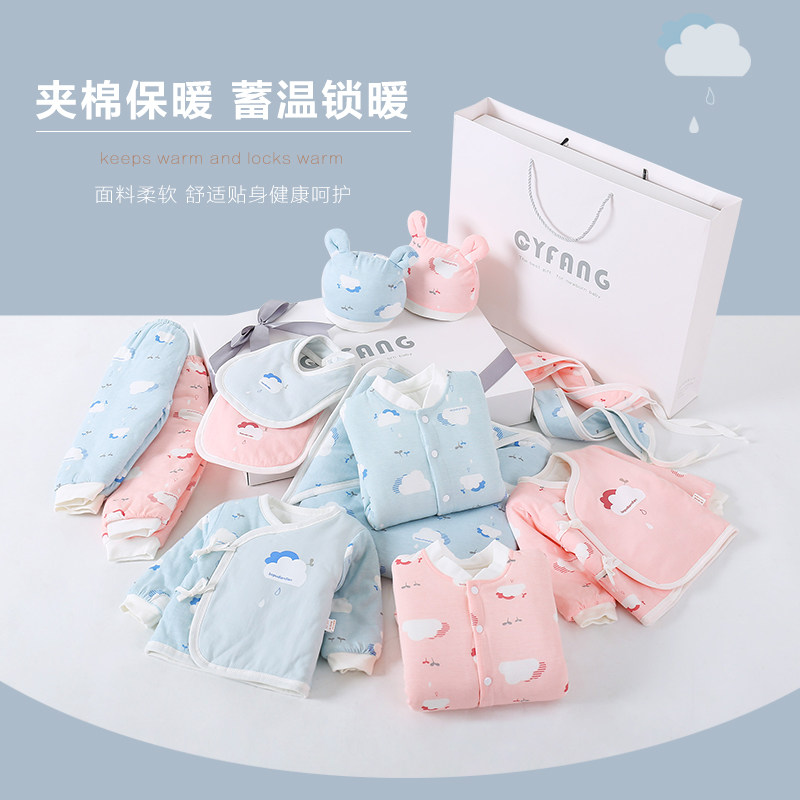 Baby clothes cotton clothes pants set gift box newborn 0-3 months 6 baby autumn and winter clothes thickened cotton jacket supplies gift