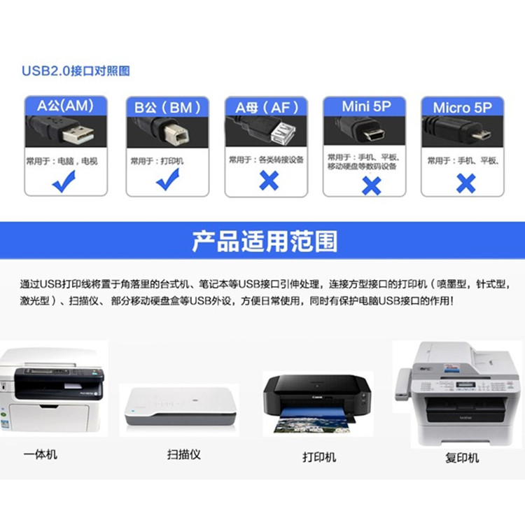 1 m 1 m 3 m 5M 5M black USB2 0 printing wire copper core with magnetic ring print-meter scanner data connection thread
