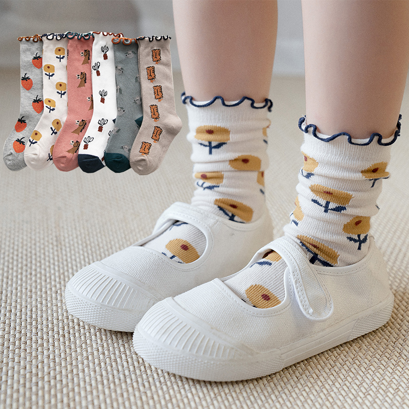 Children's baby Songkou lace long cylinder socks All cotton girls Princess Bubble Sox Boomers Men's middle cylinder pure cotton socks