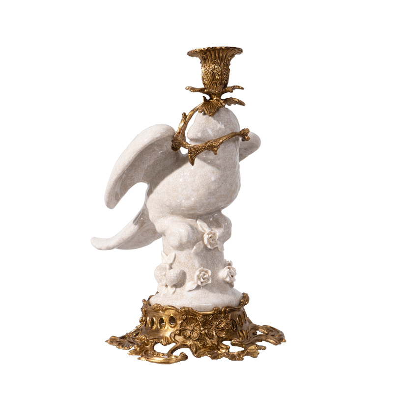 Eurostyle white ceramic matching copper decoration wax candle holder high-end home Xuanguan Desktop Decorative Parrot Art Pendulum-Taobao