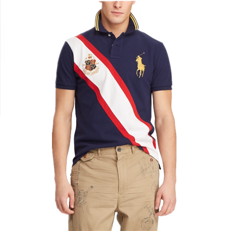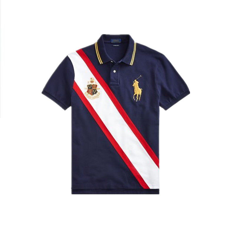 2022 summer classic oblique strip men's stand-up collar sports POLO shirt T-shirt men's trendy color matching short-sleeved t-shirt summer