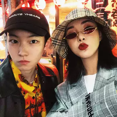 South Korea flat round super narrow frame ins Super fire glasses red with chain sunglasses women Net red with small face sunglasses