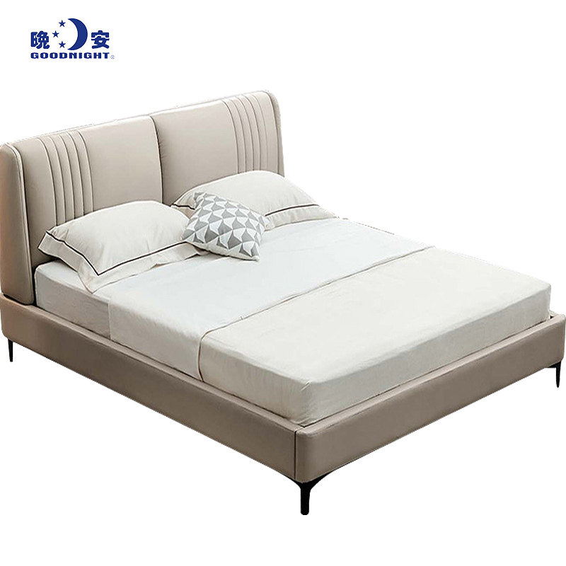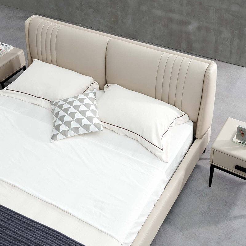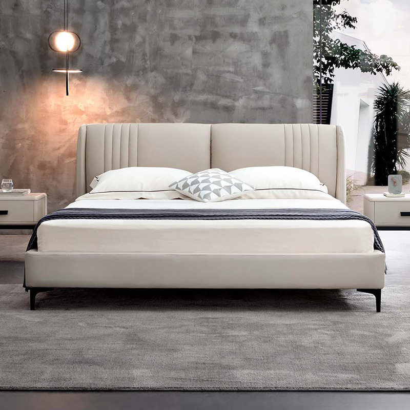 Good night Home Soft bed Nordic modern minimalist light extravagant double man bed genuine leather bed 1 8 m master bedroom wedding bed