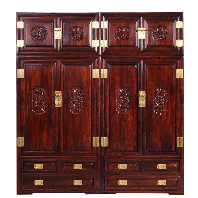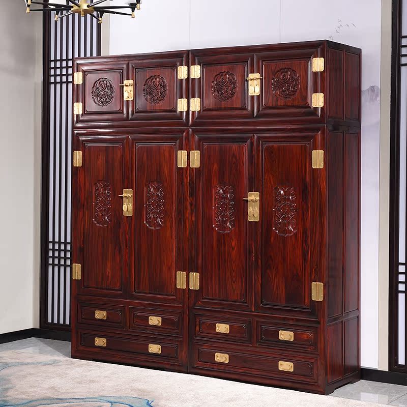 Renowned Beijing Peak Red Wood Furniture Wardrobe Top Box Cabinet Chinese Solid Wood Indonesia Black Acid Branches Broadleaf Yellow Sandalwood Clothing