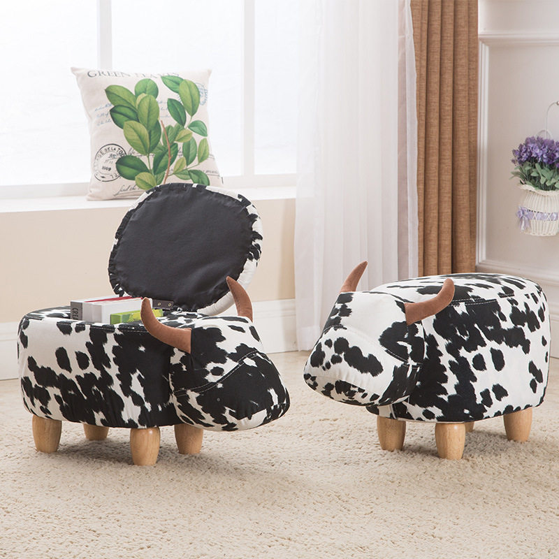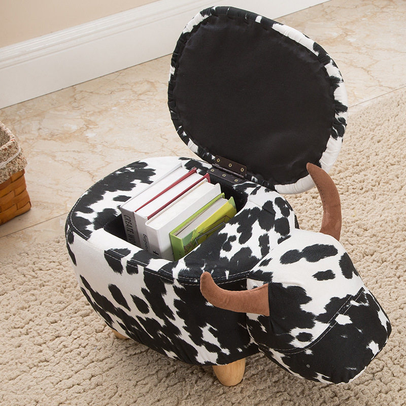 Animal cartoon solid wood storage storage can sit change of shoes stool Home creative living room cute door small sofa stool