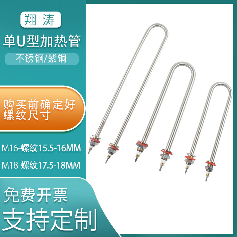 Single u type heating pipe U type electric heating pipe stainless steel heating pipe burning water rod electric heating rod 220V red copper electric heating pipe