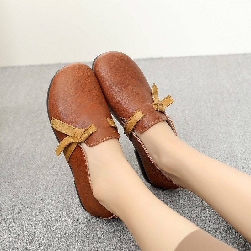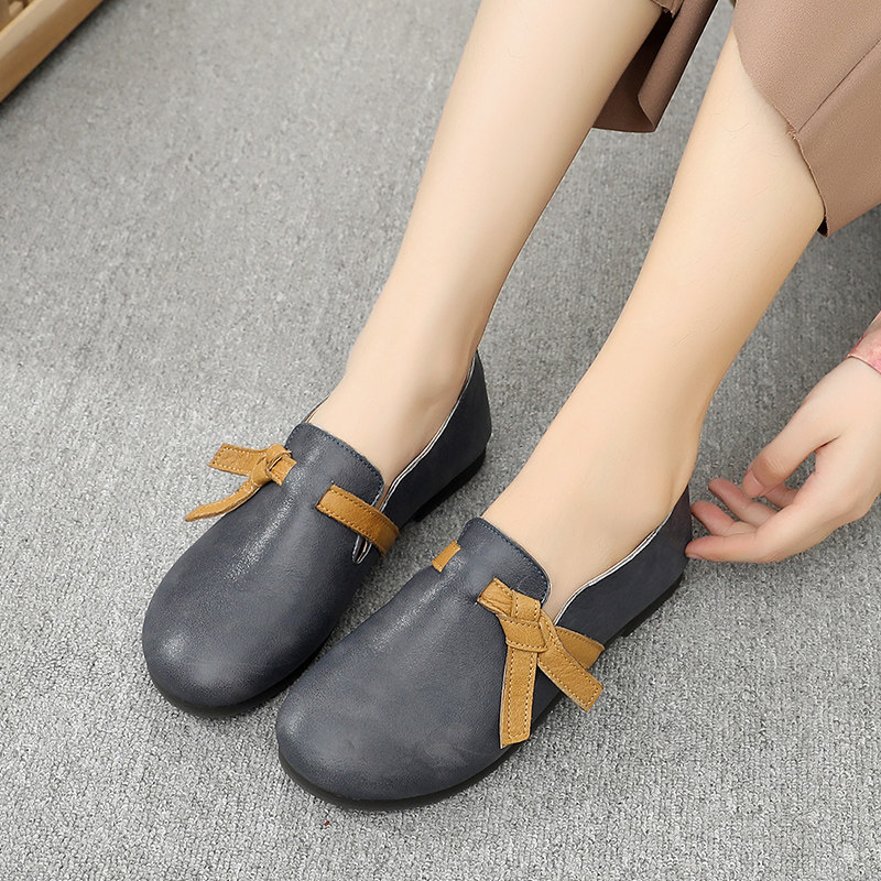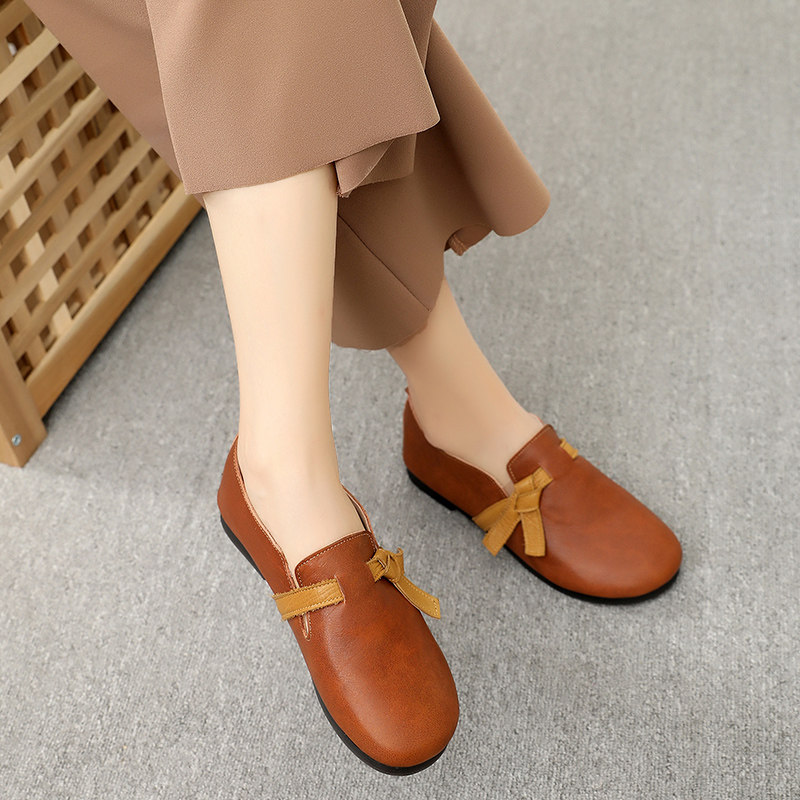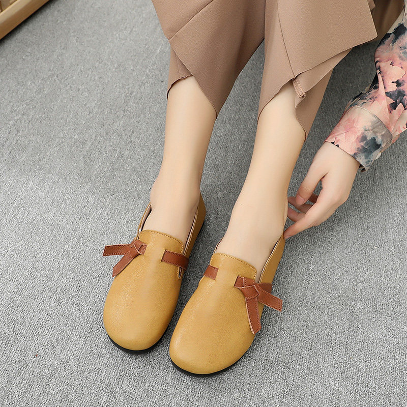 2020 new spring fall retro style Genuine Leather Shoes Children Flat Bottom Casual Comfort Large Size Women Shoes Soft Bottom Mother Shoes