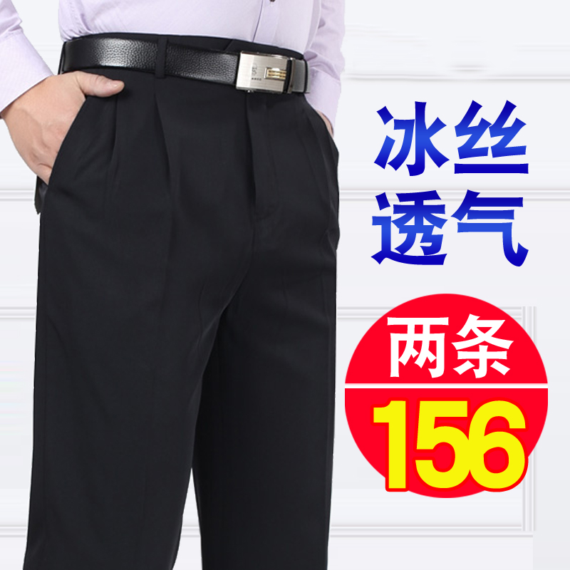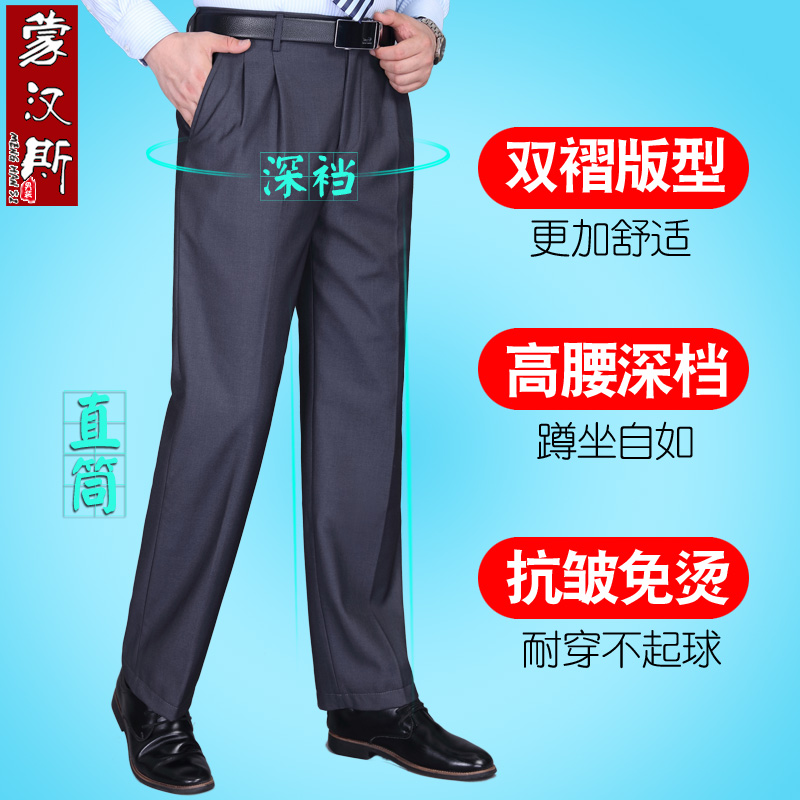 Dad Pants Spring Autumn Middle-aged Men's Western Pants Double Plexant Loose Straight Barrel Casual Pants Middle Aged Men Pants Summer Money