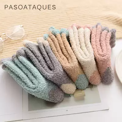 Coral velvet socks female home furry warm cold winter floor adult moon sleeping sleep
