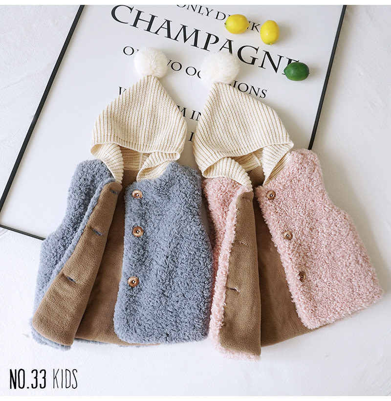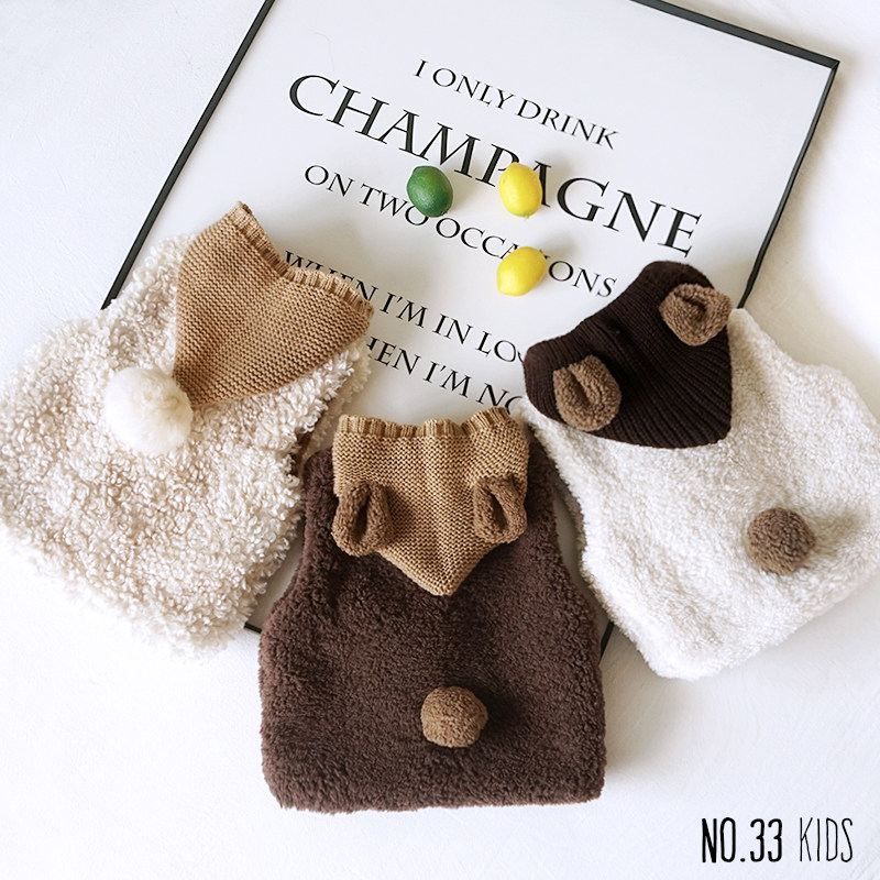 Baby fur waistcoat outside wearing children's autumn and winter clothing male children cute lamb sweater vest female baby waistcoat 1 year 3