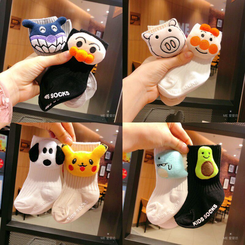 2 double spring autumn summer baby socks 0-3-12 months 1 year old newborn baby boy styled pure cotton non-slip boneless stockings