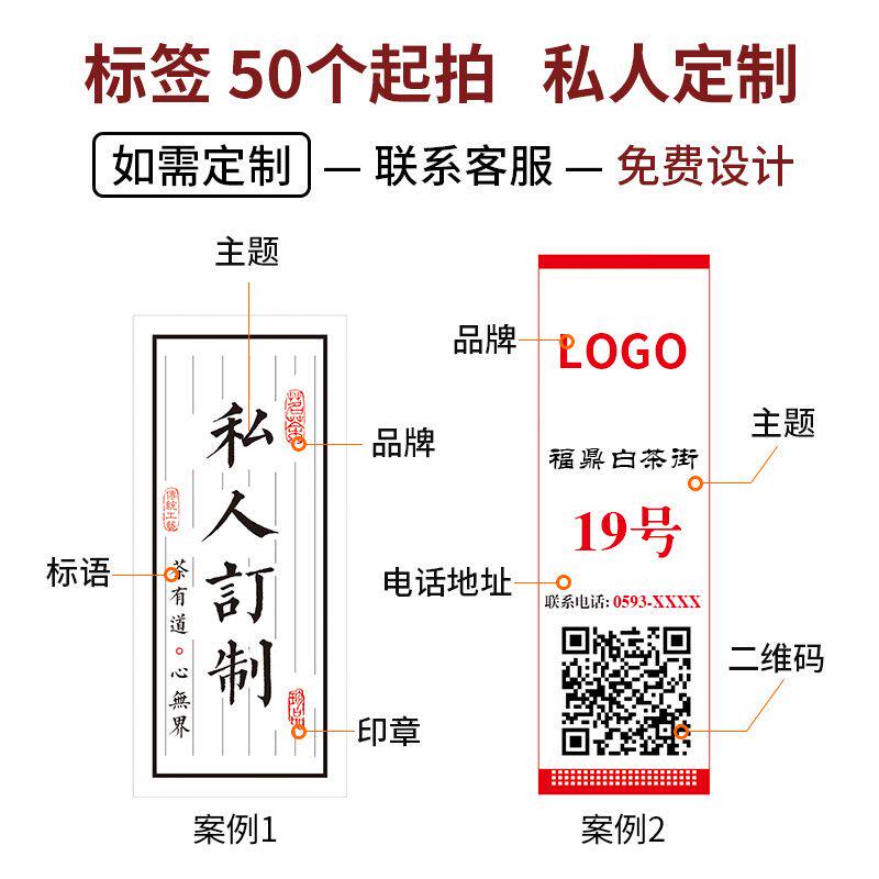 Fuding White Tea Putea Tea Cake Tea Cake Box Black Tea Tea Tieguanyin Adhesive Label Custom Printing