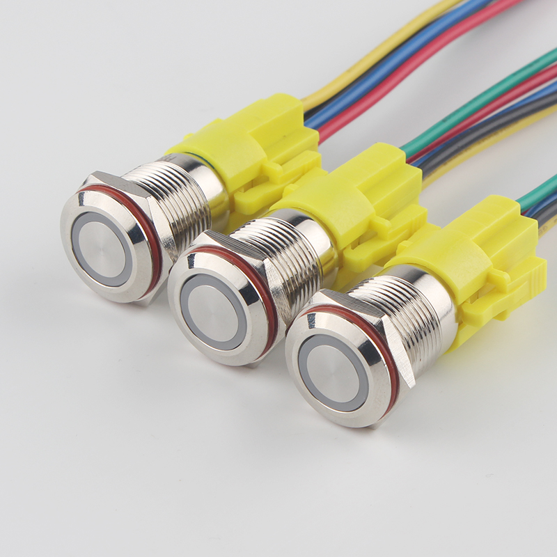 16mm metal button switch flat head ring light self-reset computer retrofit car one-click start point motion waterproof