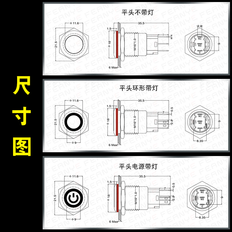 16mm with plug-in 3-6V self-duplex-red-flat head annular lamp 16mm with plug-in 3-6V self-duplex-yellow-flat head annular lamp 16mm with plug-in 3-6V